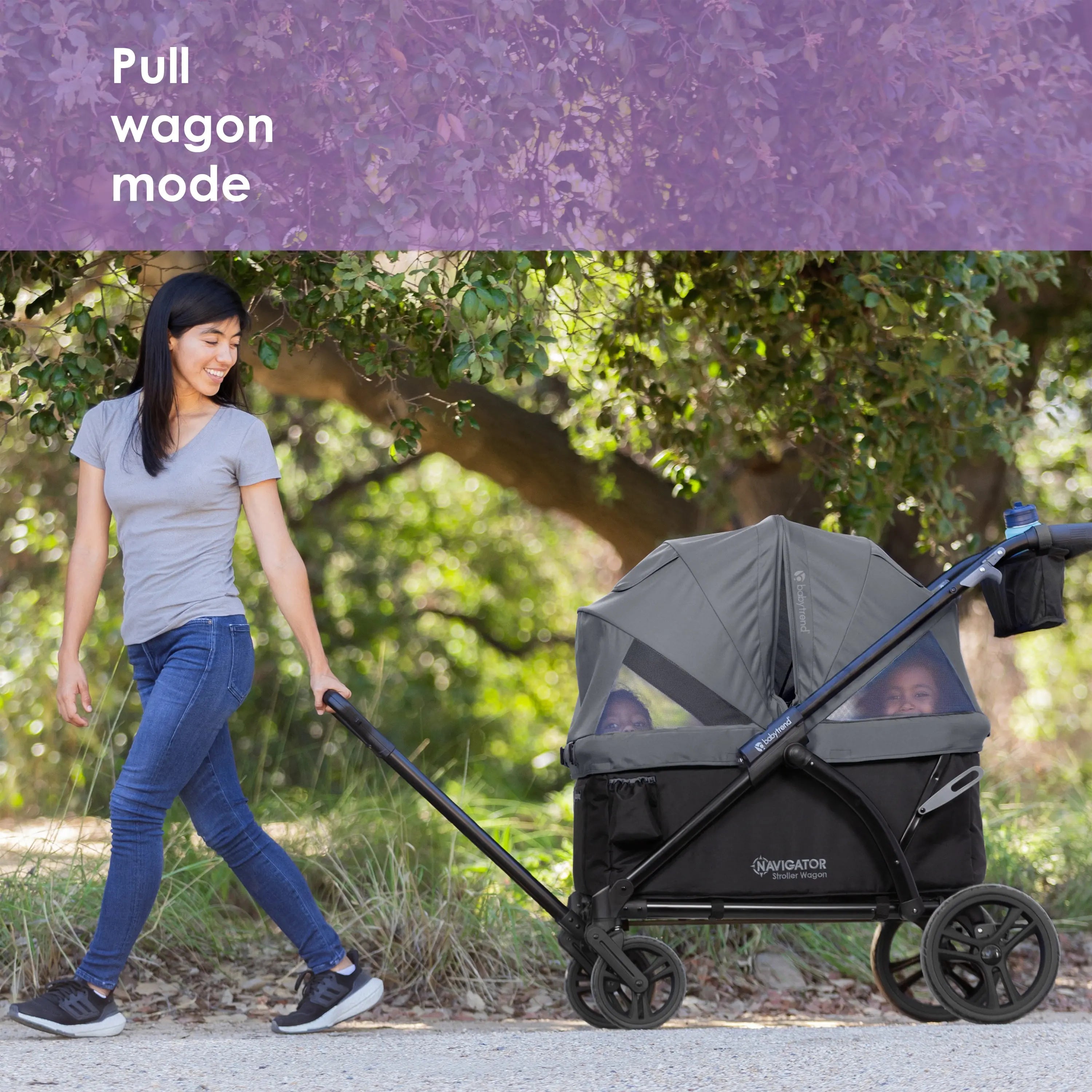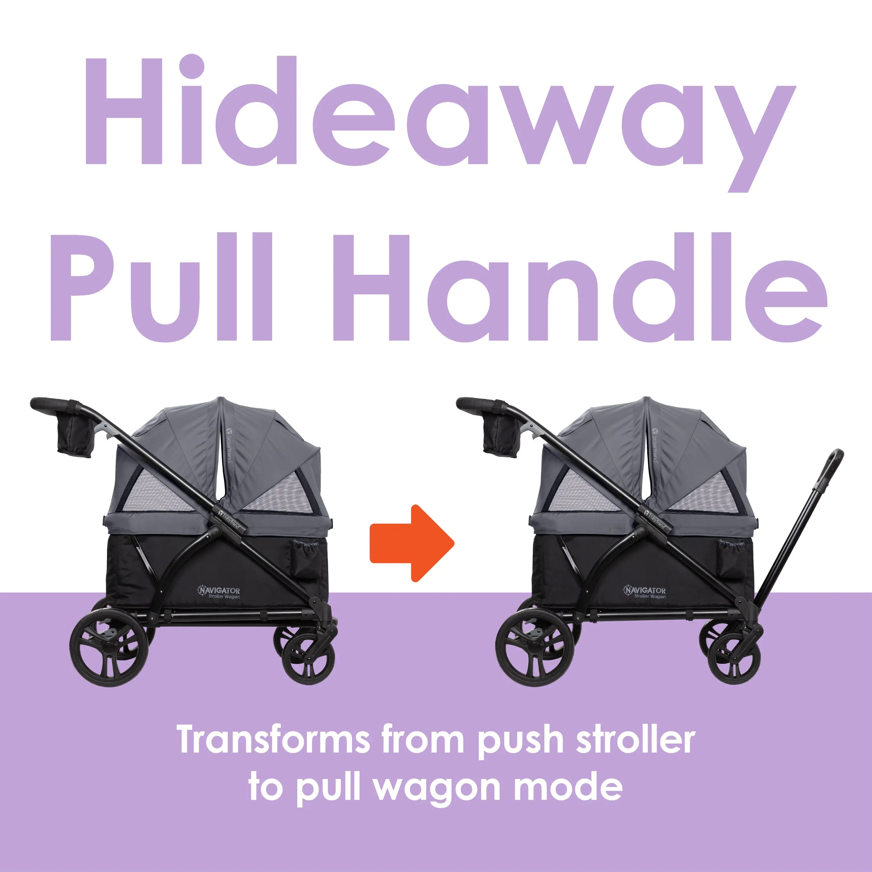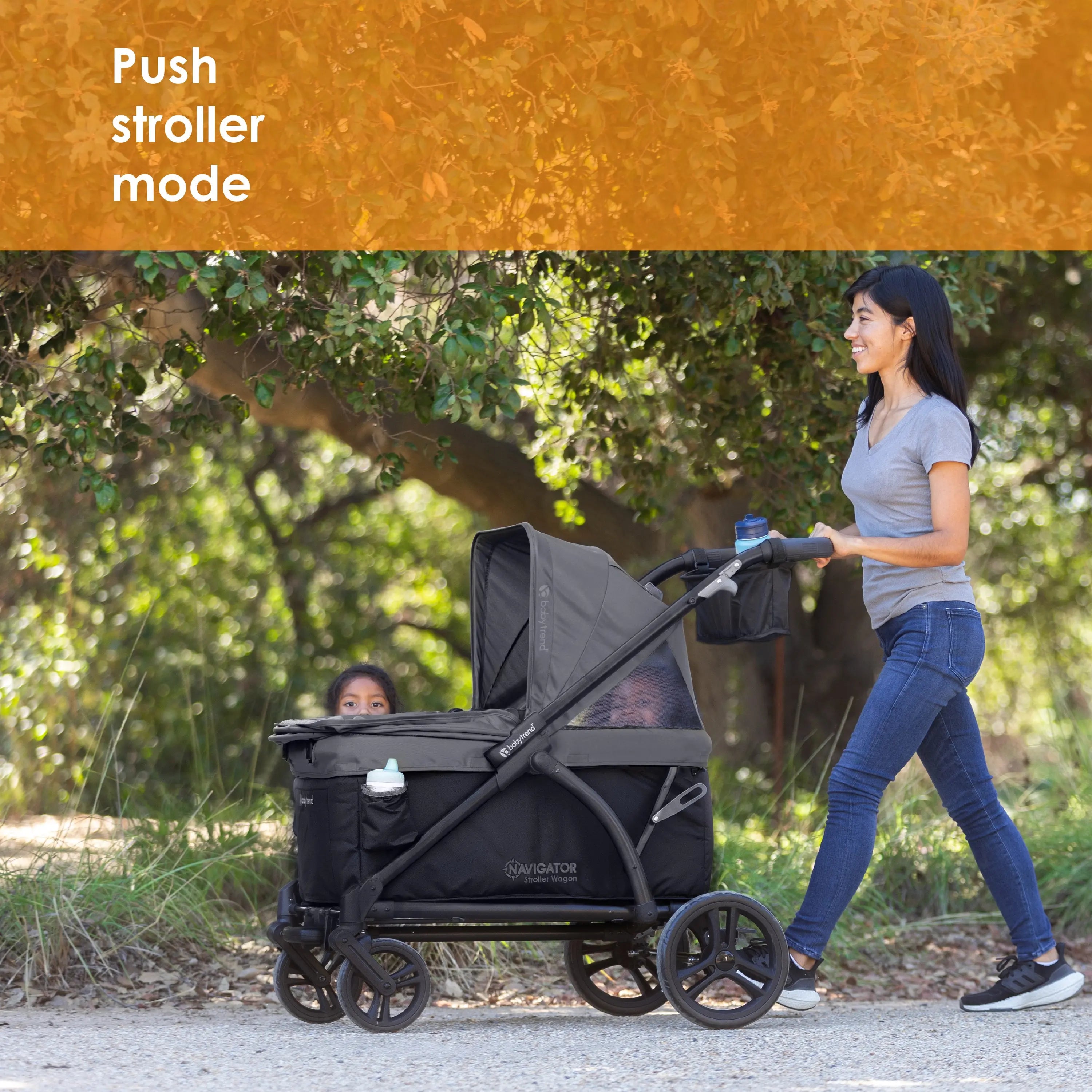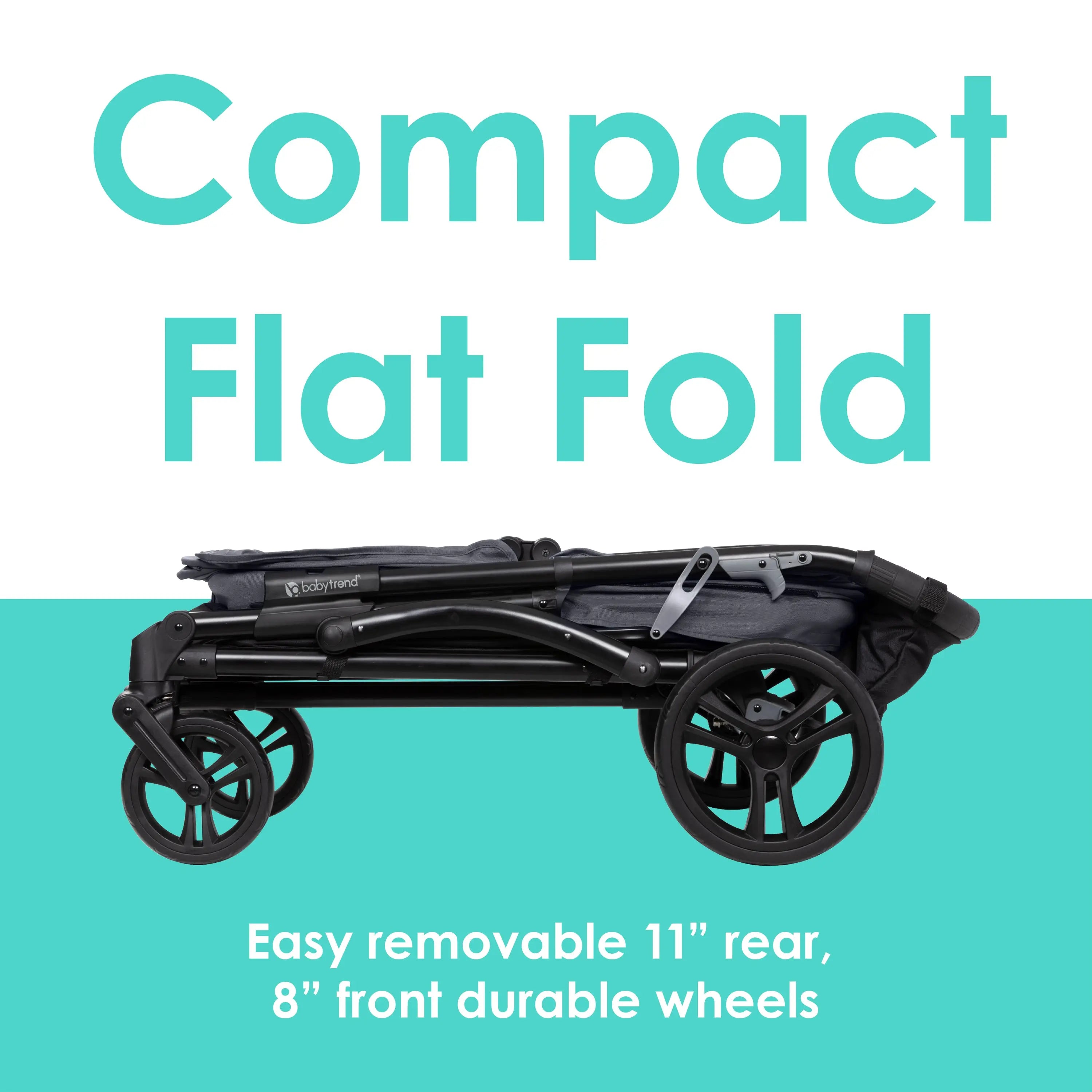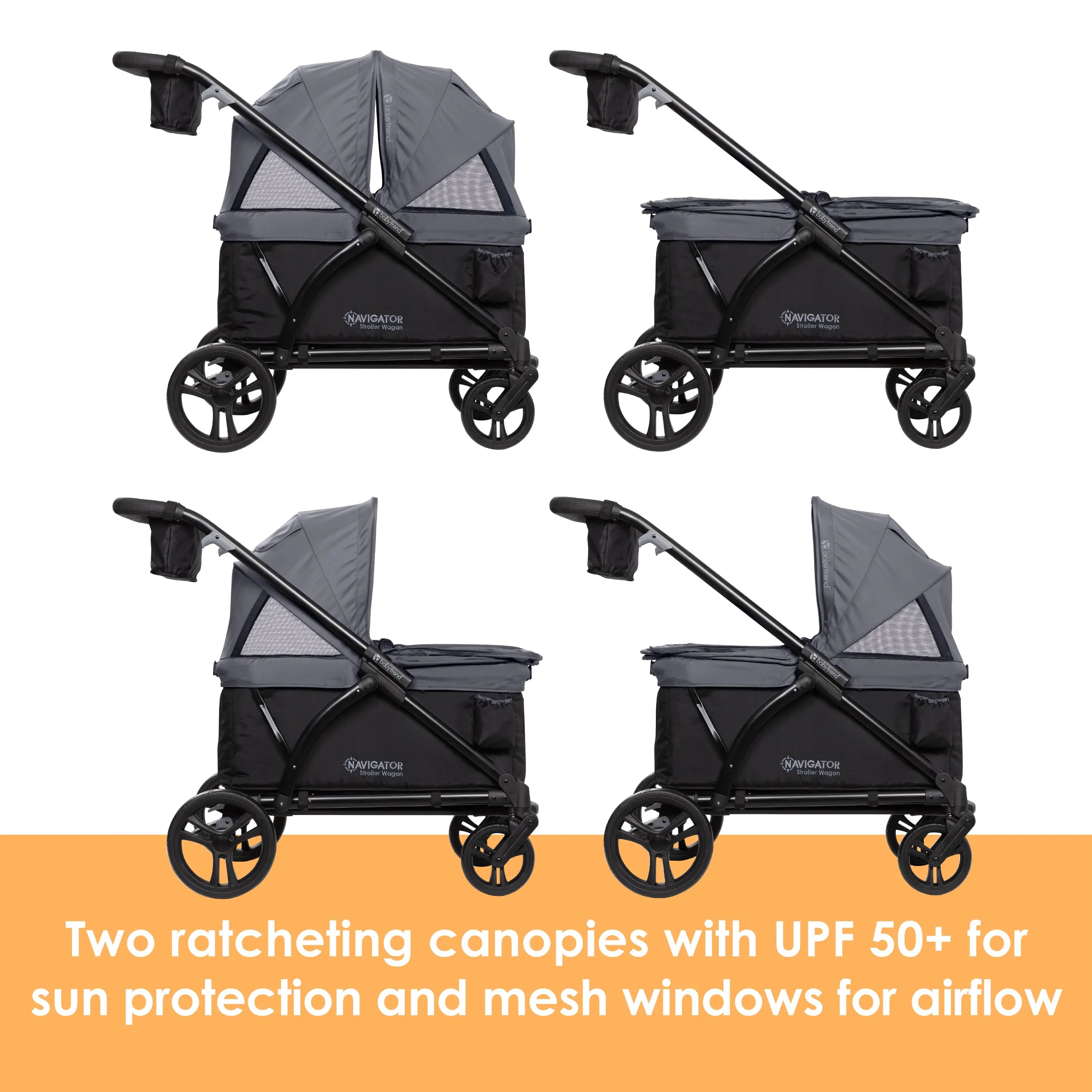 The Navigator® Stroller Wagon is the new and improved wagon option from Baby Trend® to fit your family's unique needs! The large cargo space offers built-in seating for two and includes two 3-point safety harness belts to keep your little ones secure. The dual canopies are independent and will shield both children from environmental stressors, such as the sun. Both canopies are adjustable and can be easily removed when not in use. The durable frame is dependable and will be a trusted addition to all family outings.